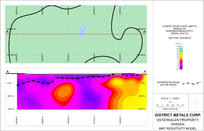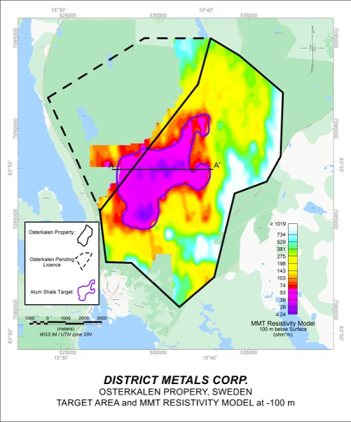 Garrett Ainsworth, CEO of District, commented: “The MobileMT survey results from our Österkälen Property are highly encouraging, and reveal a strong and large conductive anomaly that aligns with the interpreted Alum Shale horizon. This supports our geological model and corporate strategy, and highlights the significant potential to host Alum Shale with important and critical raw materials.
