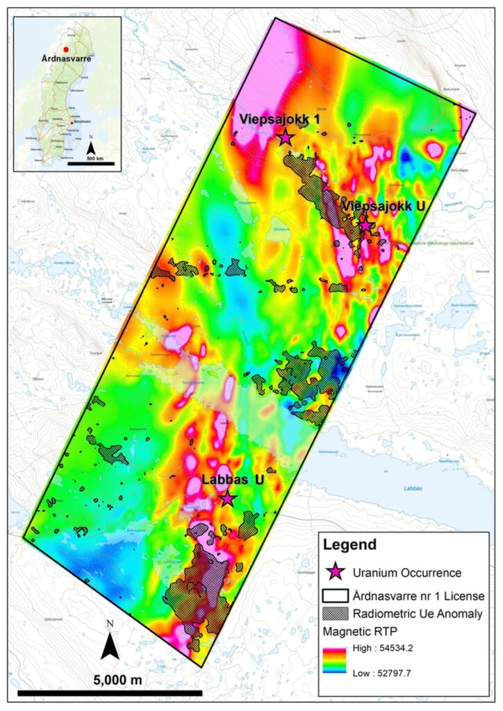 - The Ardnasvarre nr 1 mineral license is located within the Arjeplog-Arvidsjaur uranium province and covers an area of 9,708 hectares (ha) that is prospective for uranium, copper, zinc, lead, and REE.