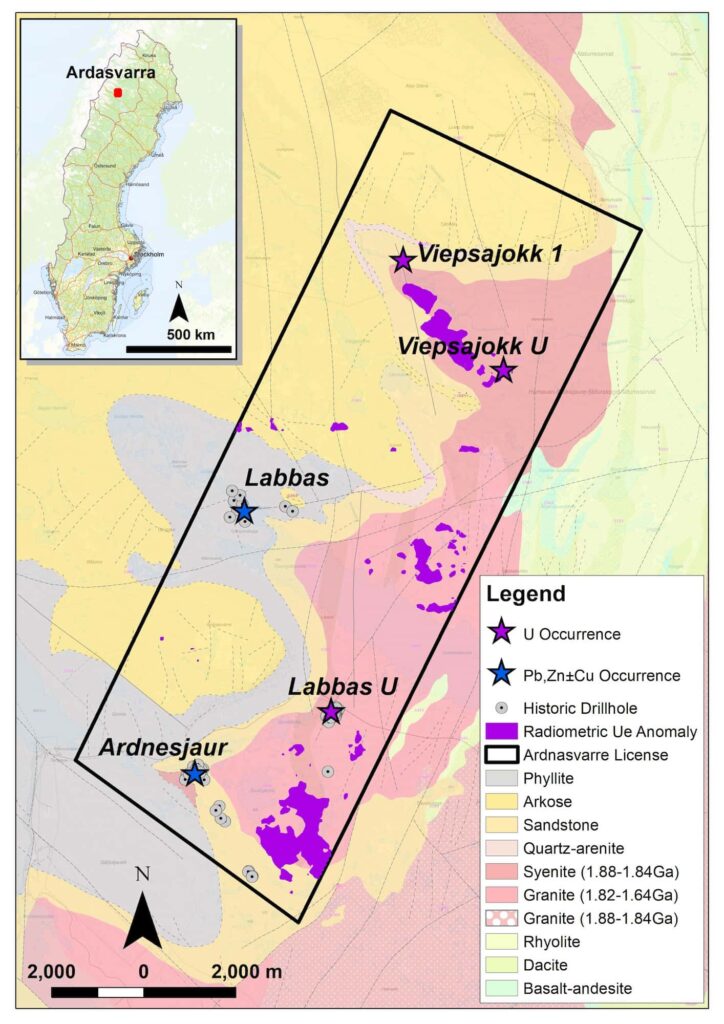 - The Ardnasvarre nr 1 mineral license is located within the Arjeplog-Arvidsjaur uranium province and covers an area of 9,708 hectares (ha) that is prospective for uranium, copper, zinc, lead, and rare earth elements (REE).